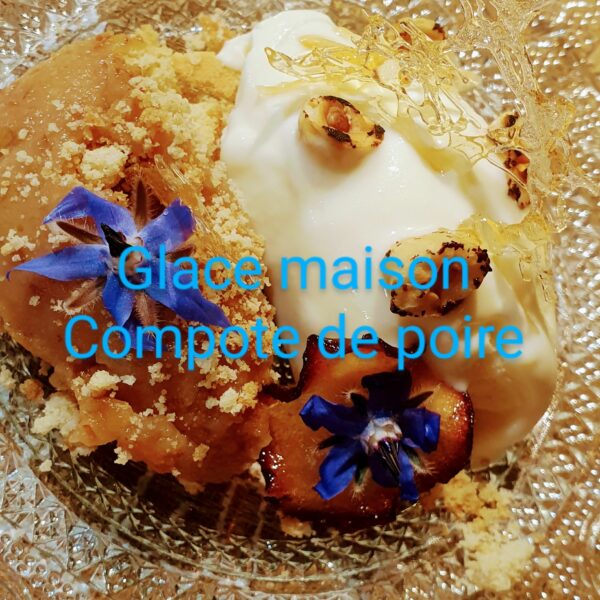 Menu table d’hôtes: entrée, plat, dessert, café ou tisane 27 € vin non compris.